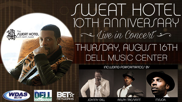 Philadelphia's Dell Music Center, in association with Premiere Networks and BET Networks, is proud to present The 10th Anniversary of the Sweat Hotel, Live in Concert on Thursday, August 16th. The event stars Keith Sweat, Johnny Gill and Ralph Tresvant and special guest Major. Tickets are on sale now at the TheDellMusicCenter.com. Learn more about the event and how you can win tickets to it here.