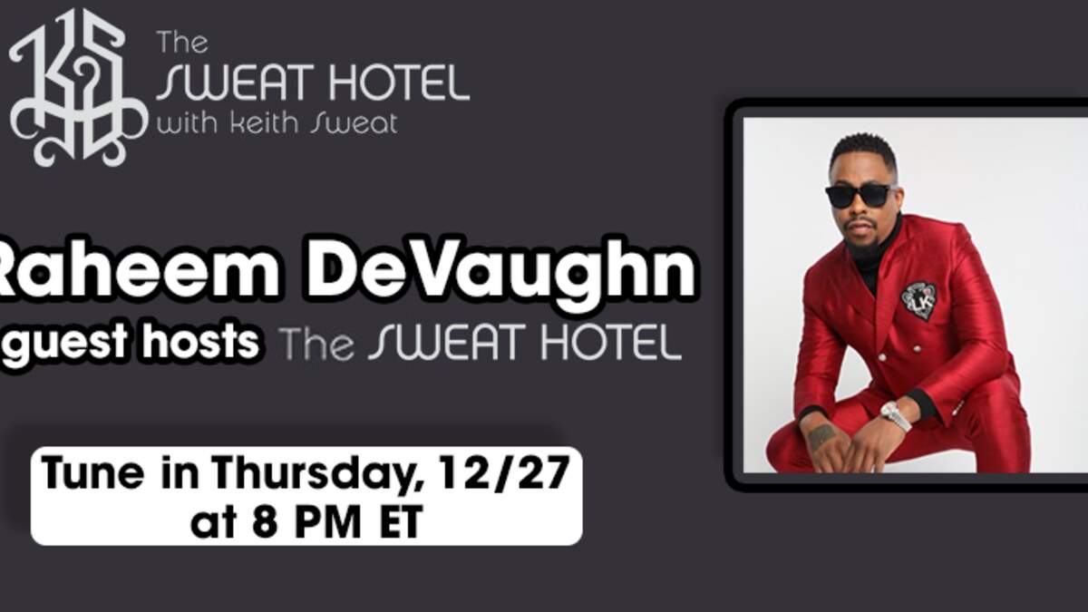 Join us this Thursday (12/27) evening, as three-time Grammy nominee Raheem DeVaughn checks into The Sweat Hotel and co-hosts the show with Keith Sweat. He'll be talking about his brand new album, Decade Of A Love King, where he'll be heading out on tour, and what went into the making of his latest project. Thats this Thursday, beginning with the 2nd hour of The Sweat Hotel.